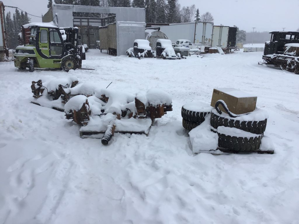 it was a loose ends kind of day in the Kingdom which i got a lot of things done. i made a video pointing out how the Linn Tractor is unless like a lawyer because they are highway truck for the bush and need a support cat along all the time. plus the staff and i are the only ones left in the world that have used and worked the linn tractors in the bush hauling freight. the video got lots of views and reviews last night on youtube. it only took 2 days to melt the ice and muskeg off the big wheels for the 41 4x4 truck which is another reason why we don't like sinking anything any more because too much time and money wasted clean up the machine. i had to use the mini Hoe to put the tires in the box car until they are needed. the last picture is the propane tiger torch that turns in to a flame thrower when the propane gas turns to a liquid.